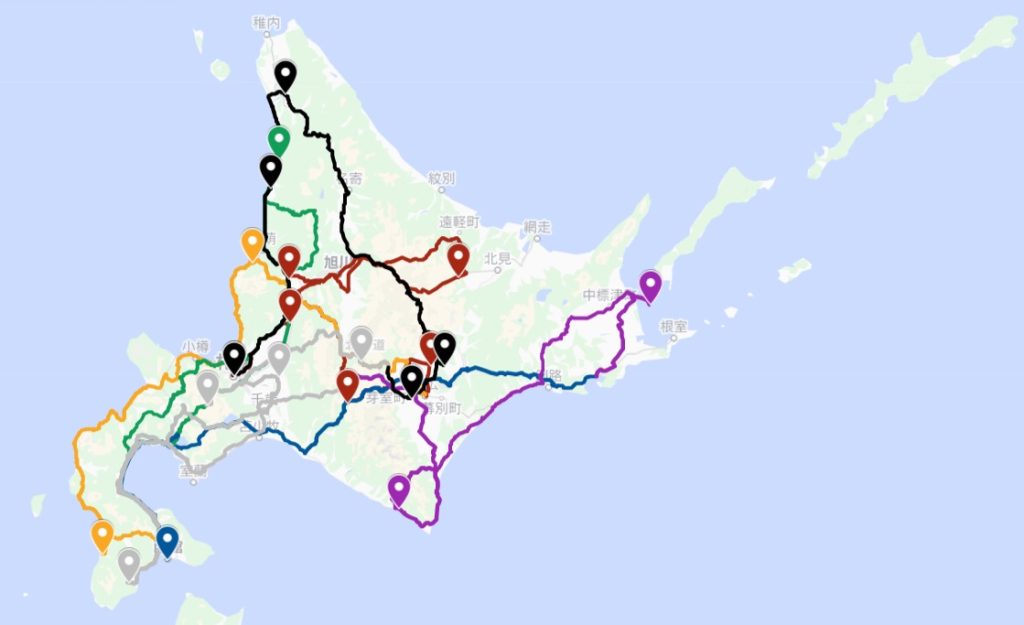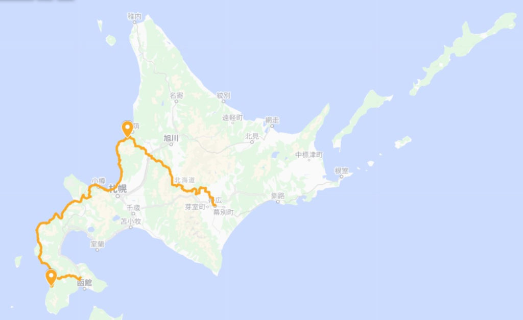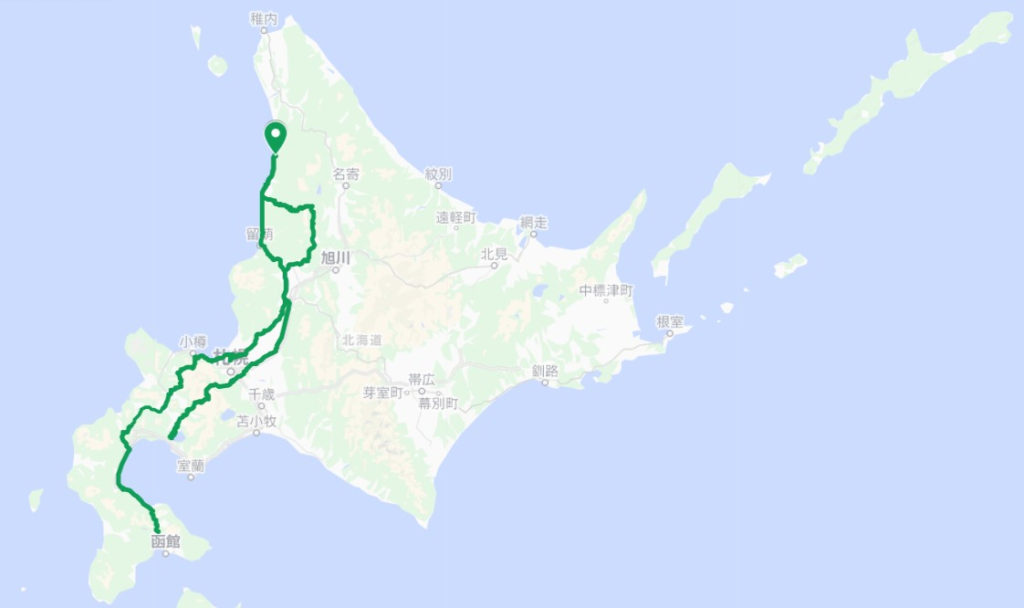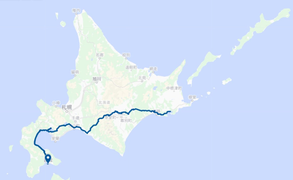 折角なので野付半島に向かった。湾の内側と外側で海の色が違ったのが印象的であった。ここで引いたのは様似、襟裳岬のえりも町の隣の町である。これは全く問題ないのだが、次に引いたのが知内。大問題も大問題、三度目の道南である。ここで三人ともやる気をなくし初めて宿泊施設を利用することを決意した。やはり動いている車とは寝心地が違う(それはそう)。明朝広尾町のホテルを出発した我々は、今までで道南に接続する主要な道はすべて通ってしまっているので今回最初で最後となる高速の使用をした。