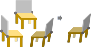 椅子取りゲームのイメージ。最後の一つになるまで座れる椅子が減っていき勝敗が決まる