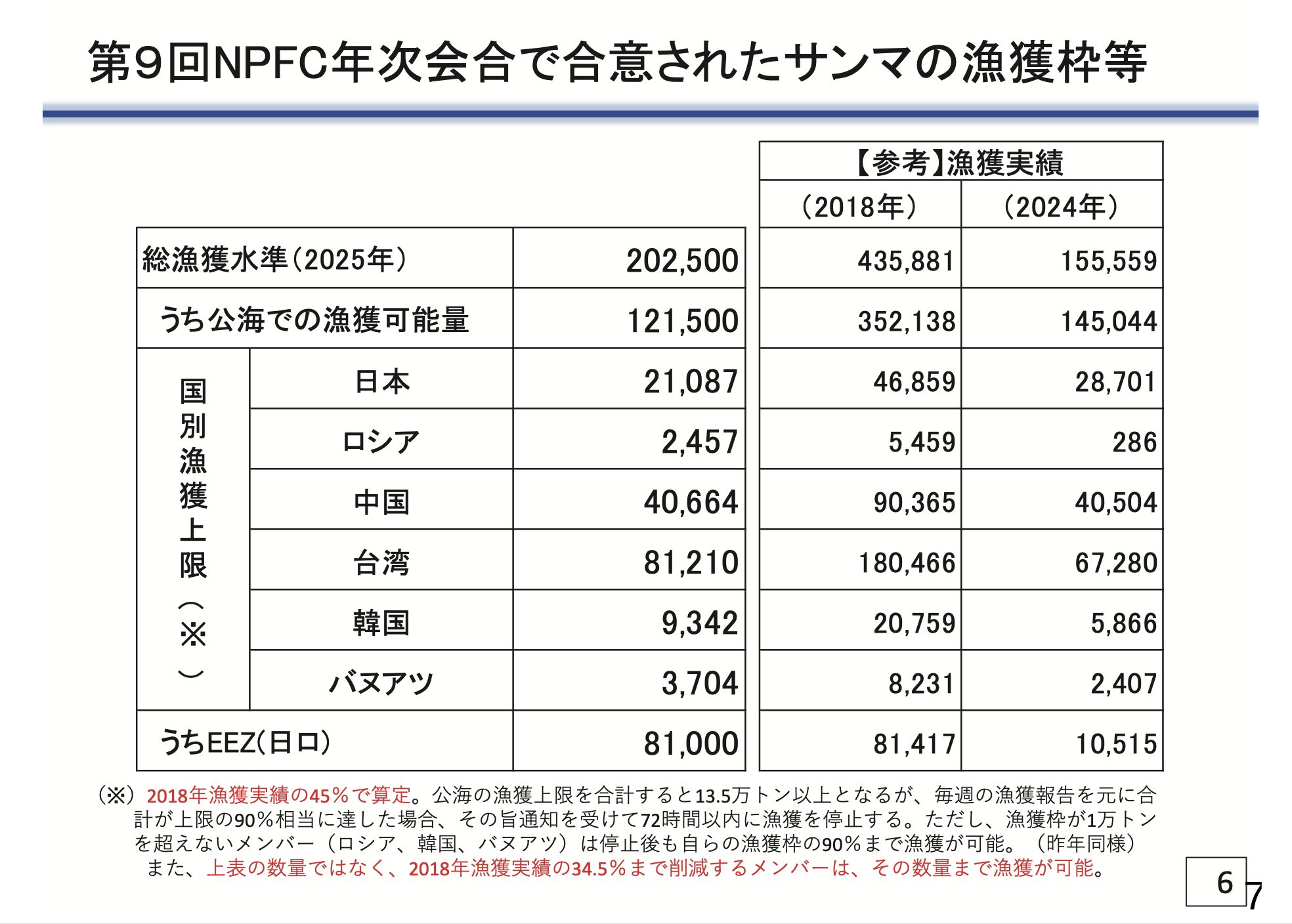 わーくには北太平洋漁業委員会というところに所属していて、そこでは各国のさんまの漁獲枠に関する取り決めが行われているらしい。
